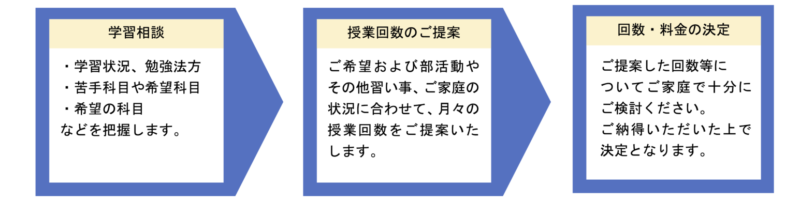 現在の学習状況や目標設定、ご希望などを踏まえて授業回数をご提案いたします。